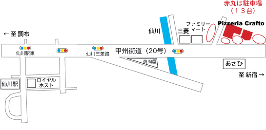 1.仙川駅改札を出たら左の道に出て、左方向にお進みください。(甲州街道に向かいます)